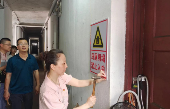 炎炎夏日,在支部書(shū)記、公司總經(jīng)理陳麗雪的帶領(lǐng)下,大家冒著酷暑,對(duì)星光社區(qū)50年以上老舊房屋等重點(diǎn)房屋開(kāi)展專(zhuān)項(xiàng)整治,逐戶(hù)逐棟排查,查看老舊房屋安全隱患、了解房屋居住人數(shù)、安全措施等情況。同時(shí),組織全體黨員干部在老舊房屋上張貼安全警示牌、告知牌、拉警示帶等,并明確告知用戶(hù)各樓棟管理人員及安全員的聯(lián)系電話(huà)等。黨員們分工協(xié)作,汗流浹背,確保社區(qū)每一處老舊房屋安全能夠得到保障。