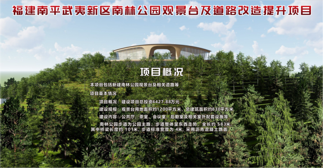 1月13日上午,福建南平武夷新區(qū)南林公園觀景臺及道路改造提升項目在南林公園舉辦開工儀式,該項目的代業(yè)主單位為福建省閩北水利水電工程公司。參加本次開工儀式的有:南平市武夷新區(qū)管理委員會、南平市城市公園服務中心、南平綠發(fā)集團有限公司、南平武夷新區(qū)城市發(fā)展集團有限公司、福建省閩北水利水電工程公司等主要單位及領導。 南林公園觀景臺及道路改造提升項目本項目包括新建南林公園觀景臺及相關道路等。建設項目總投資4427.88萬元。建設規(guī)模為觀景臺用地面積約1200平方米,總建筑面積約830平方米,建設內容包含公共廳、茶室、會議室、后勤室及相關室外配套設施等;南林公園步道為公園主路,步道整體呈東西走勢,全長約 583m,其中橋梁長度約 101m,步道標準寬度為 4m,采用瀝青混凝土路面。